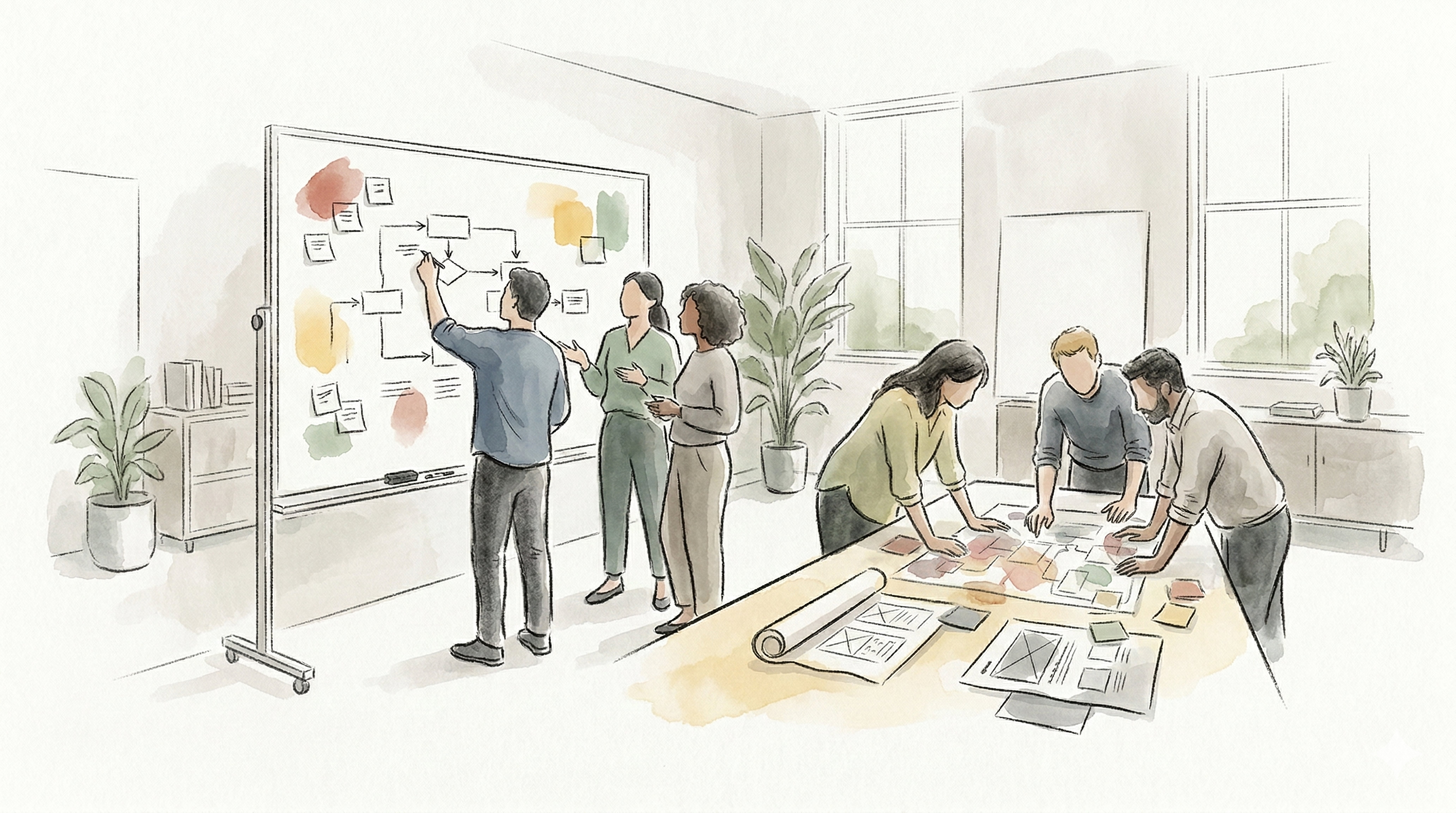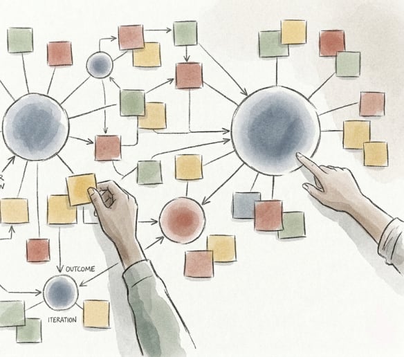 You learn by doing through guided practice, structured inquiry, and real organizational challenges. The Studio gives you a quiet, intentional space to explore, test ideas, and build your capability as a designer.