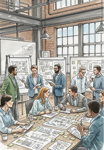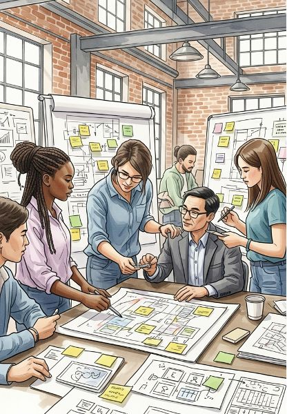 The studio is a virtual space for analyzing organizations and learning through hands-on design practice.